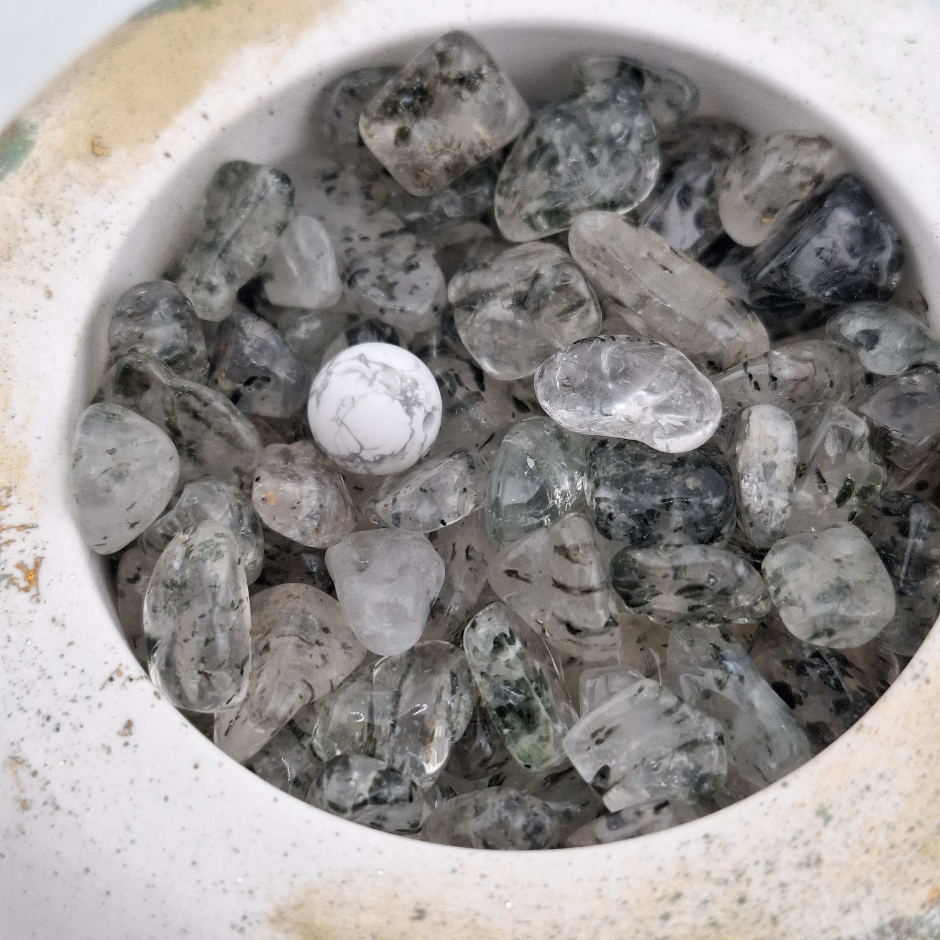 Le quartz tourmaliné est une pierre de protection et d’ancrage, combinant la clarté du quartz et la force de la tourmaline noire.