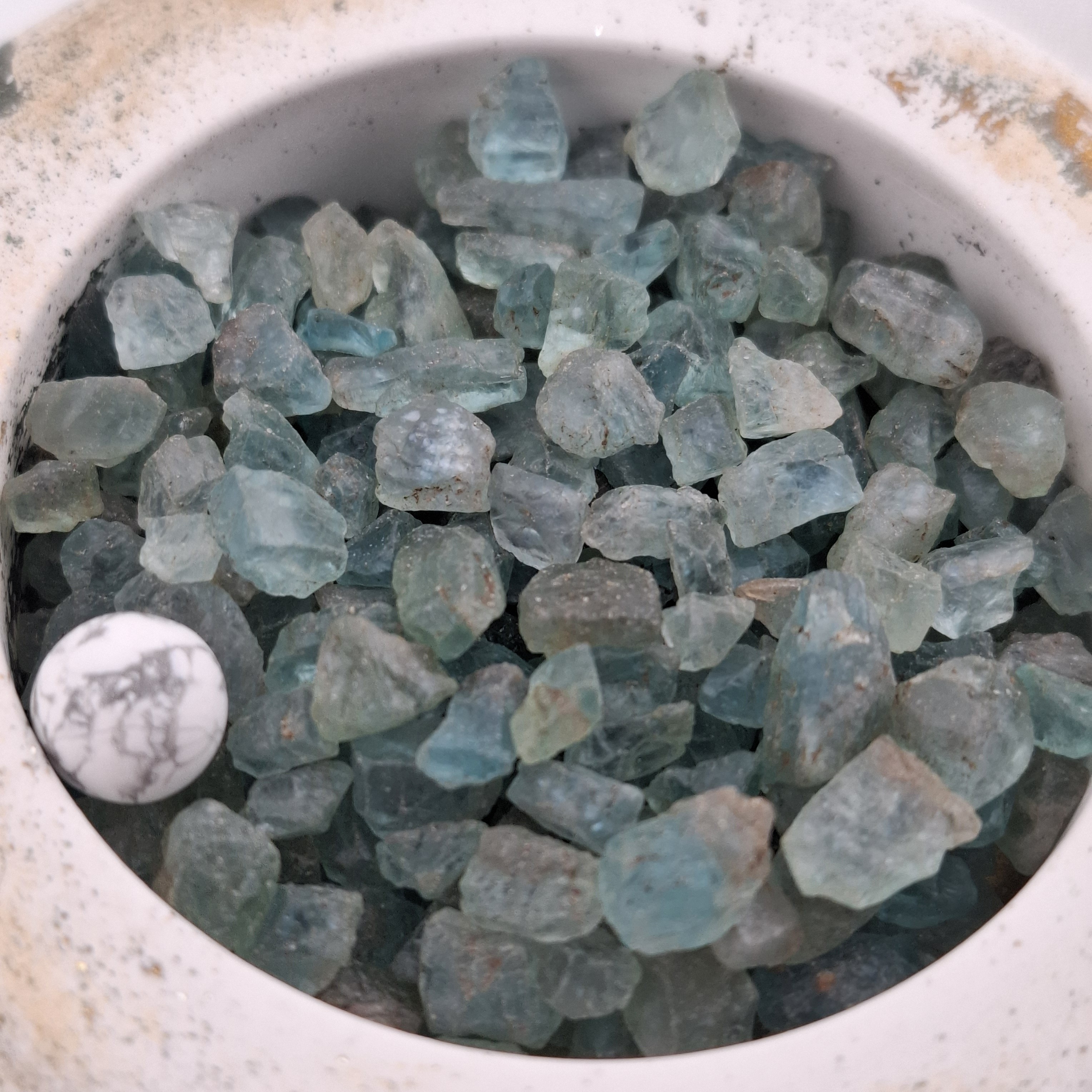 Chips en fluorite bleue 50 grammes vendu sans contenant dans une pochette craft.