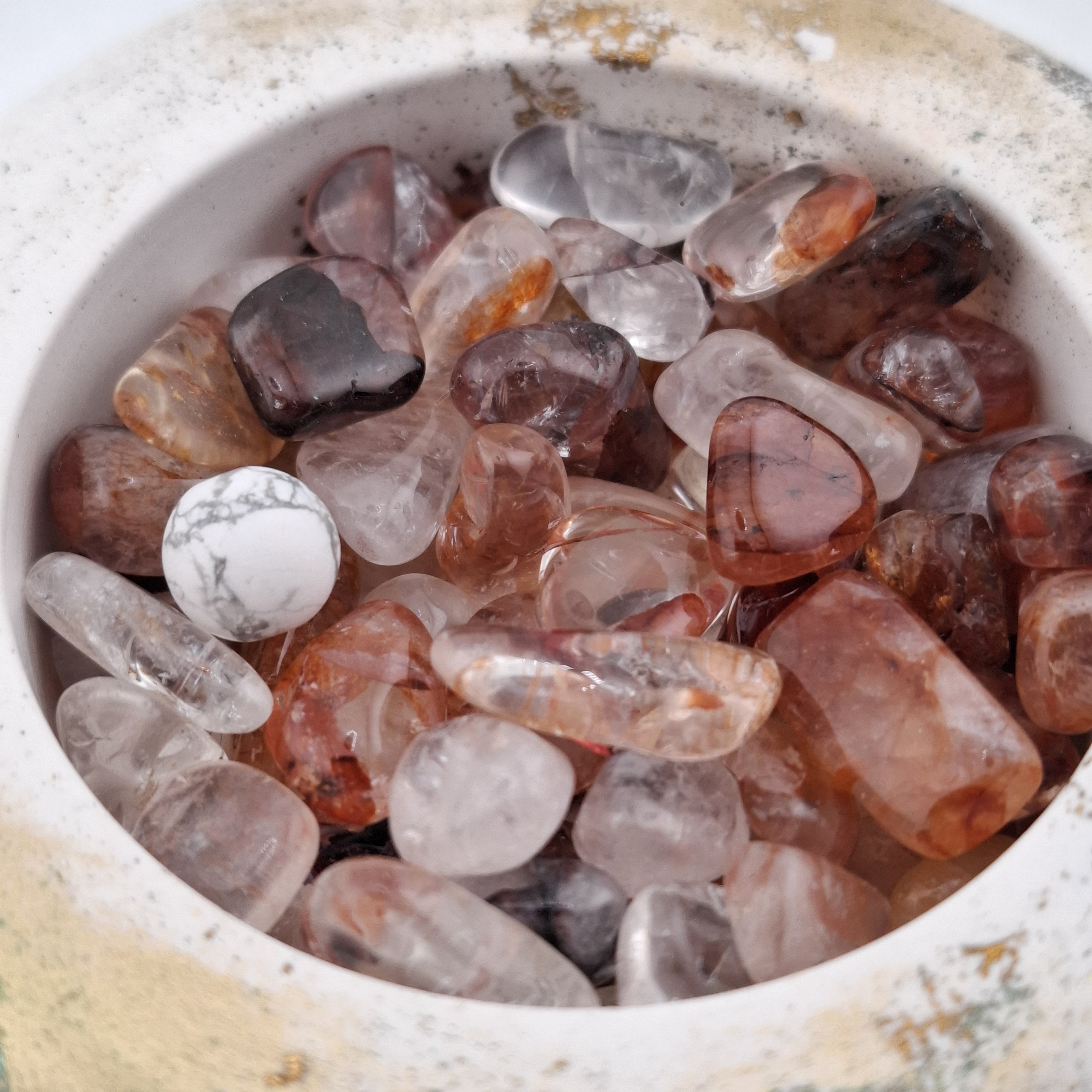 Le quartz hématoïde est une pierre d’ancrage et de vitalité, associant la clarté du quartz à l’énergie dynamisante de l’hématite.