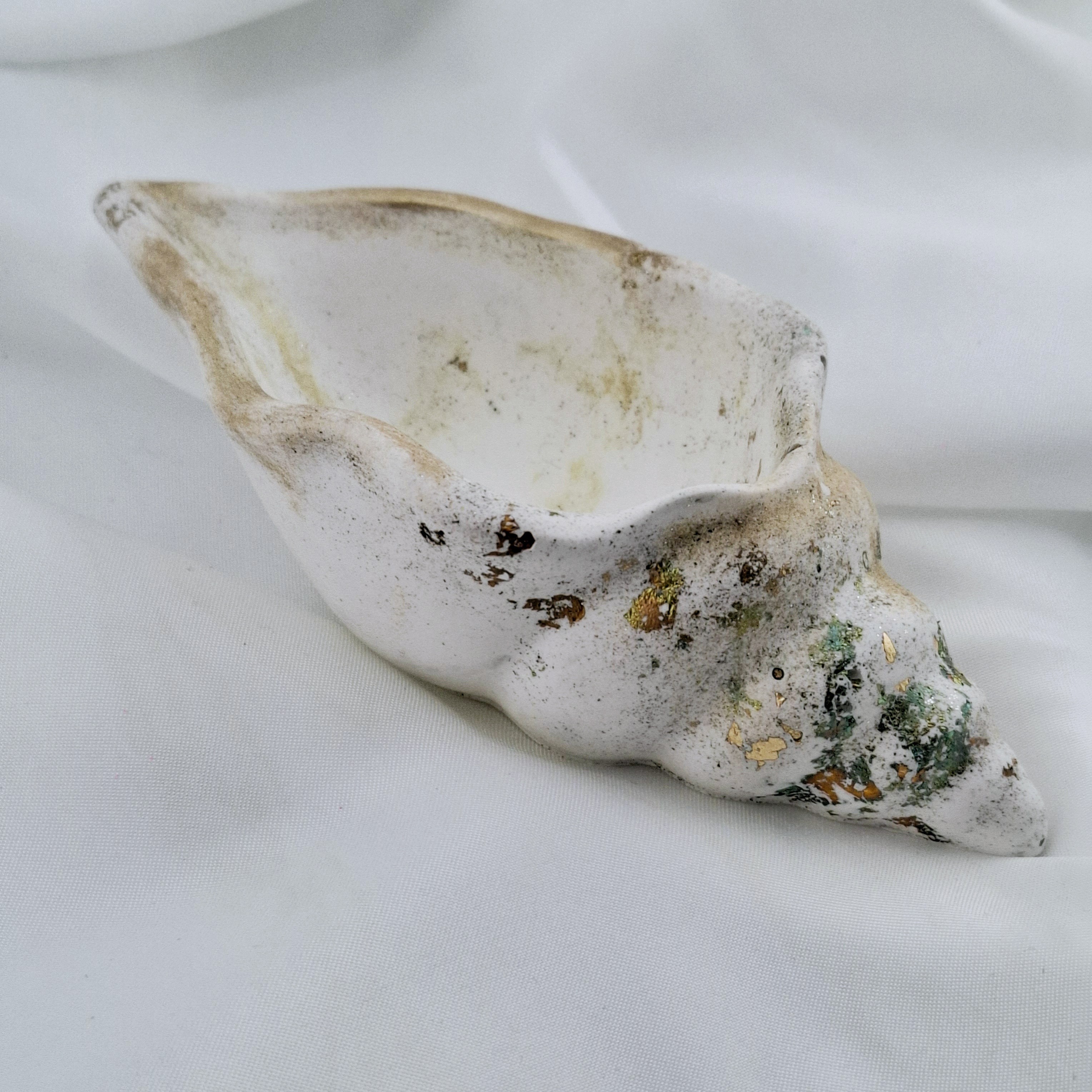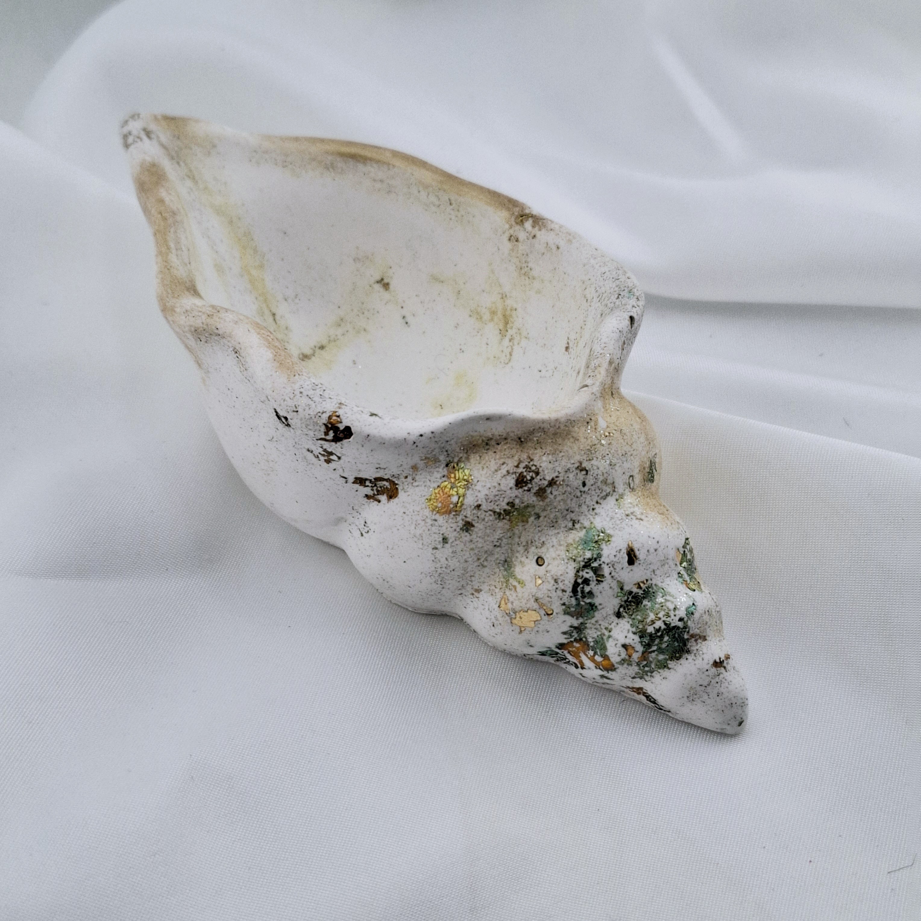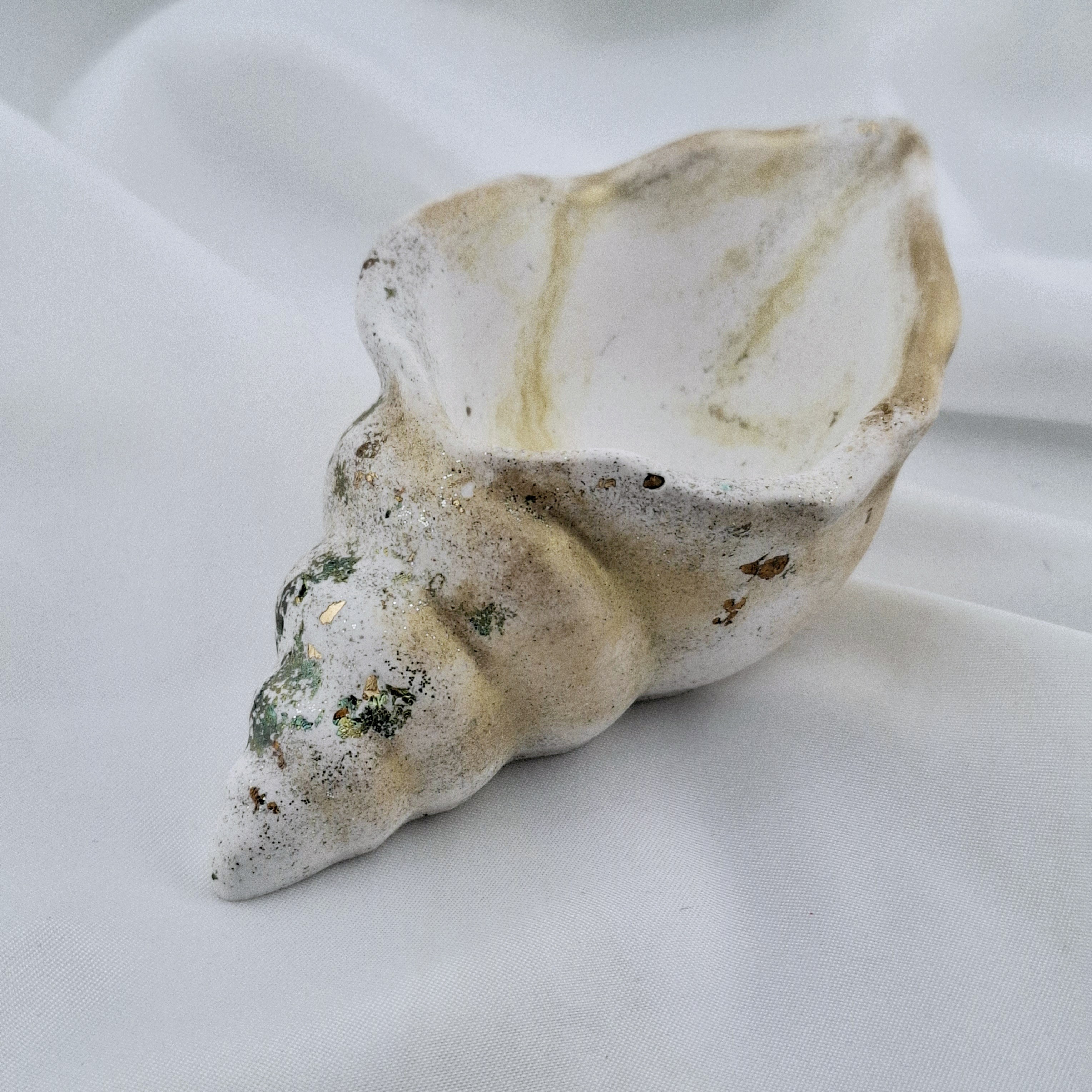 Ajoutez une touche d’élégance à votre intérieur avec ce superbe coquillage en résine minérale, fabriqué par mes soins , il est sublimé par du pigment doré et de délicates feuilles d’or bleuté pour une finition raffinée et lumineuse.