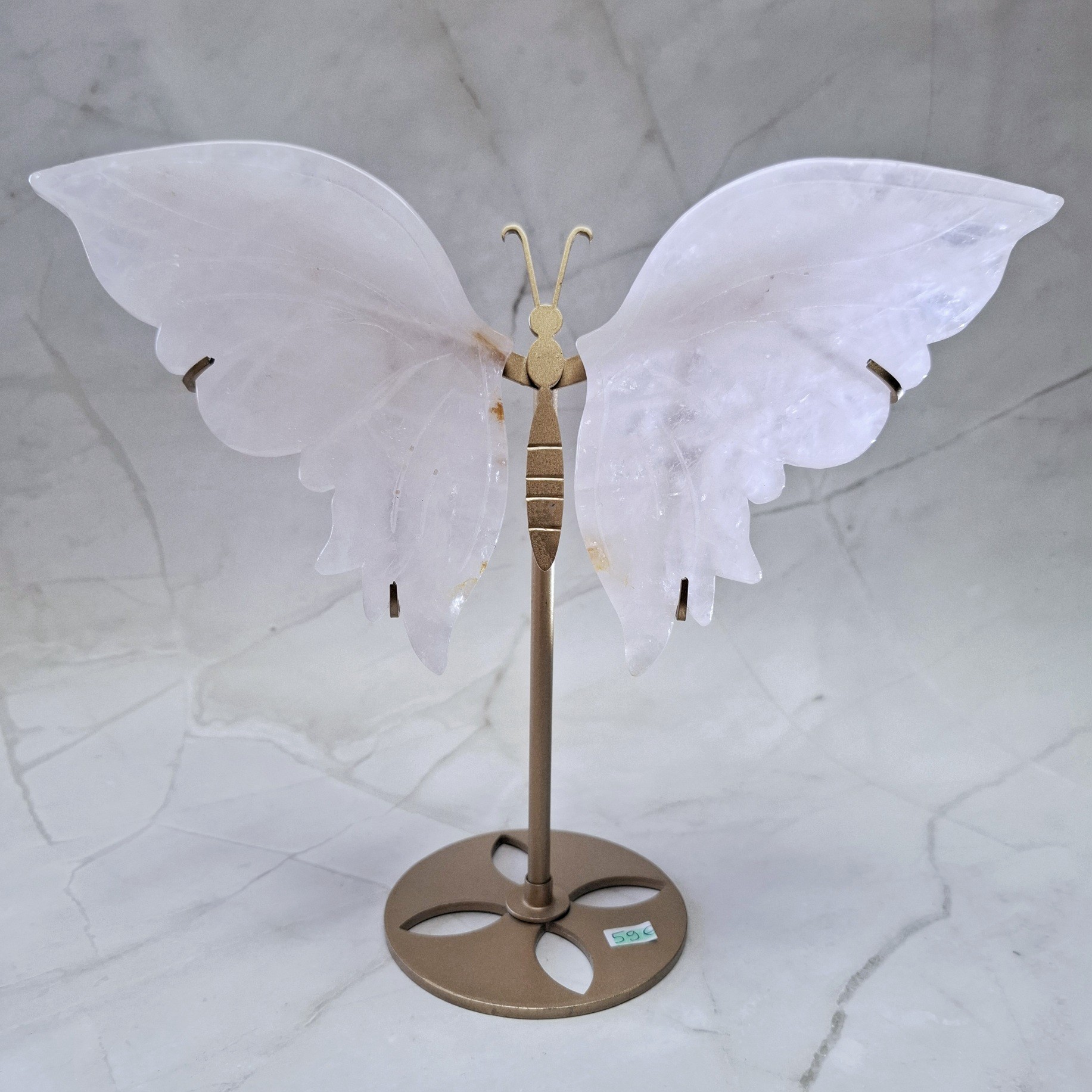 Matériaux : métal (support) – quartz rose (ailes)